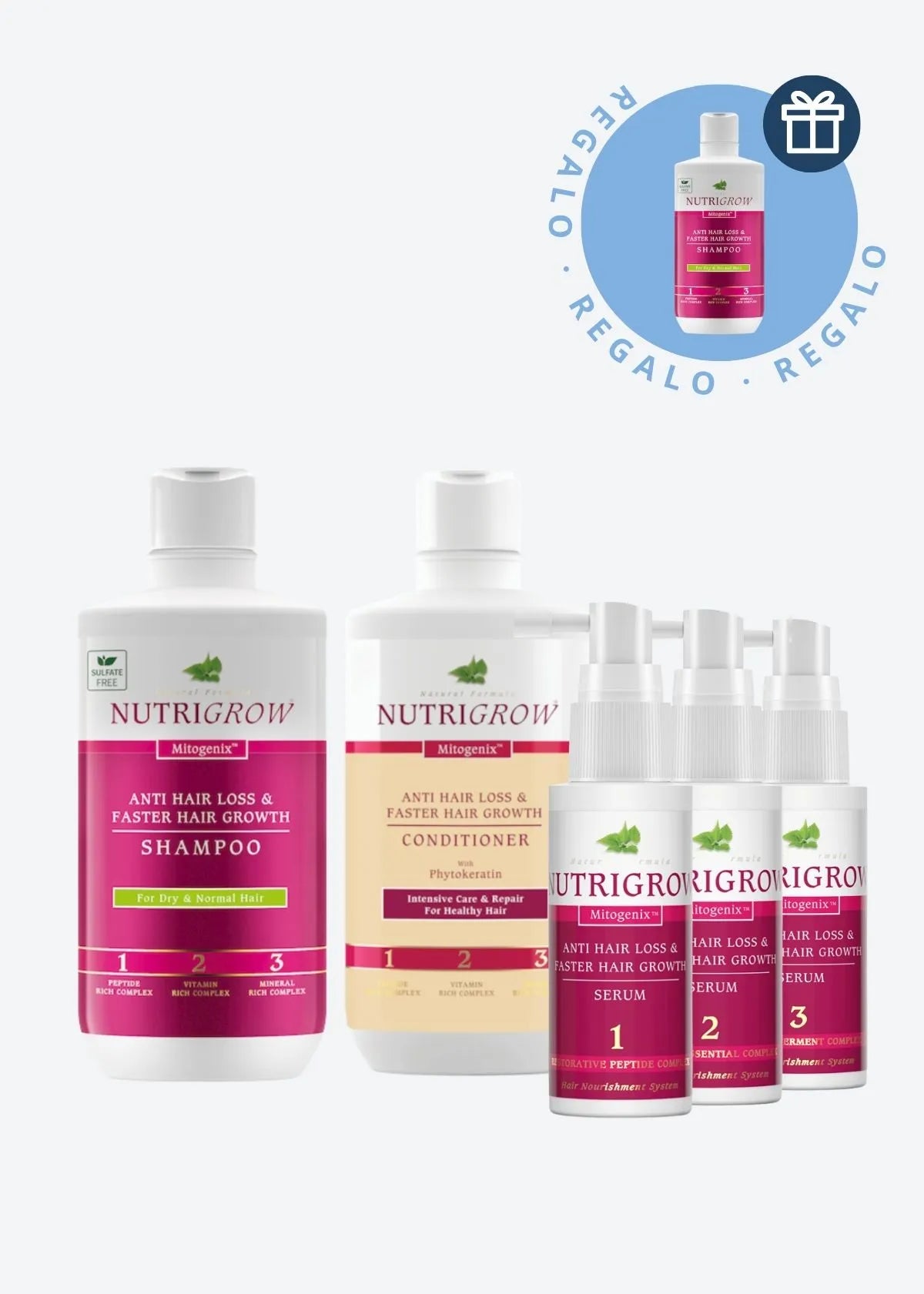 Pack Completo Anticaída Nutrigrow (Shampoo + Acondicionador + Sérum) + Shampoo de Regalo